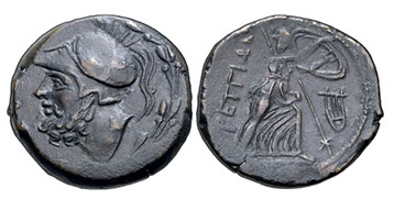 La figura femminile che rappresenta la dea Hera Hoplosmia, armata di un grande scudo, una lancia e con un elmo in testa, può suggerirci quale possa essere stato l’aspetto di di Donna Brettia guerriera.